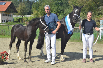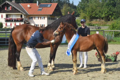 Der Tag begann mit der Registrierung und Bewertung von Stuten und Fohlen durch den Bayerischen Zuchtverband für Kleinpferde und Spezialpferderassen e.V. (BZVKS). Das Welsh Cob Hengstfohlen Meisterhofs Till stach besonders hervor. Er ist in 5. Generation mit acht „Meisterhöfern“ im Stammbaum selbst von Familie Nutz gezüchtet. Als Nachkomme des Bundessieger- und Bundesprämienhengstes Meisterhofs Tatonka erhielt Till eine Note von 8,6 und wurde mit der Goldprämie ausgezeichnet, nachdem er für den Rasse- und Geschlechtstyp eine 9,5 erhalten hatte.