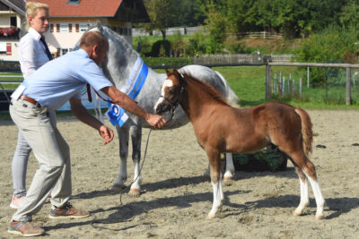 Knapp 20 Welsh Fohlen wurden mit Prämien ausgezeichnet – und das von den beiden Zuchtrichterinnen Béatrice Große-Freese (Zuchtleiterin des Bayerischen Zuchtverbands für Kleinpferde und Spezialpferderassen e.V.) und Claudia Greßhöner (IG Welsh Zuchtrichterin). Die Klassen unterteilten sich in Geschlechter und in die verschiedenen Sektionen A (Welsh Mountain Pony bis 122 cm), B (Welsh Pony bis 137 cm), D (Welsh Cob ab 137 cm) und Pb (Welsh Partbred mit mindestens 12,5 % Welshblutanteil).