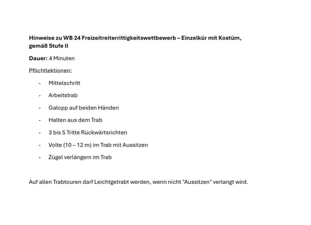 Hinweise zur Kür WB 24 auf der Bundesschau Hier gehts zu den Hinweisen zu WB 24 Kür.