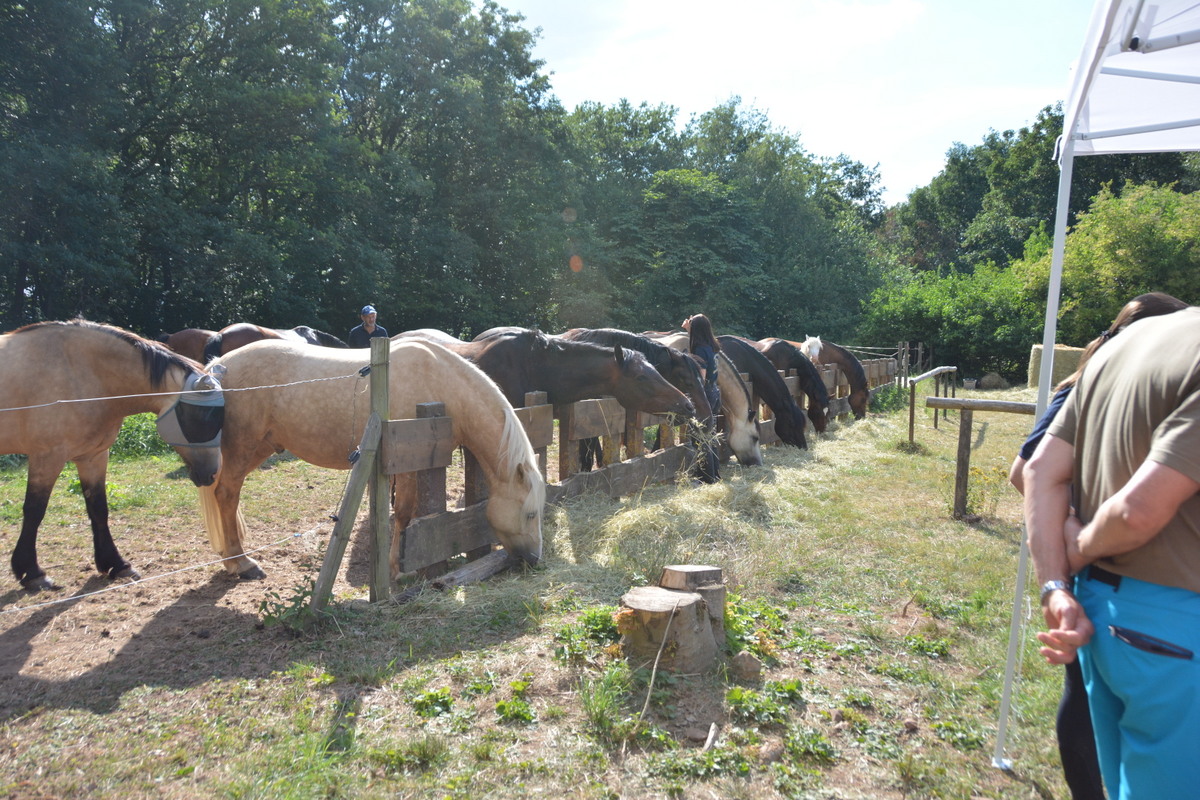 Mein Mann und ich machten uns auch auf den Weg in die Pfalz um diesem Spektakel beizuwohnen. Als wir das idylisch mitten im Wald gelegene Vereinsgelände erreichten, kamen uns gleich viele schöne Erinnerungen an vergangene Jahre: bereits unsere Kinder haben hier schon an Turnieren, Treffen und sogar schon mit der Kutsche teilgenommen. Wie schon früher, standen auch jetzt wieder die Epona-Cobs u.a. aufgereiht in ihrem großen Paddock, zufrieden das Heu fressend. Kein Stress, keine Aufregung, obwohl ein Riesenprogramm vor allen zwei- und vierbeinigen Akteuren lag.
