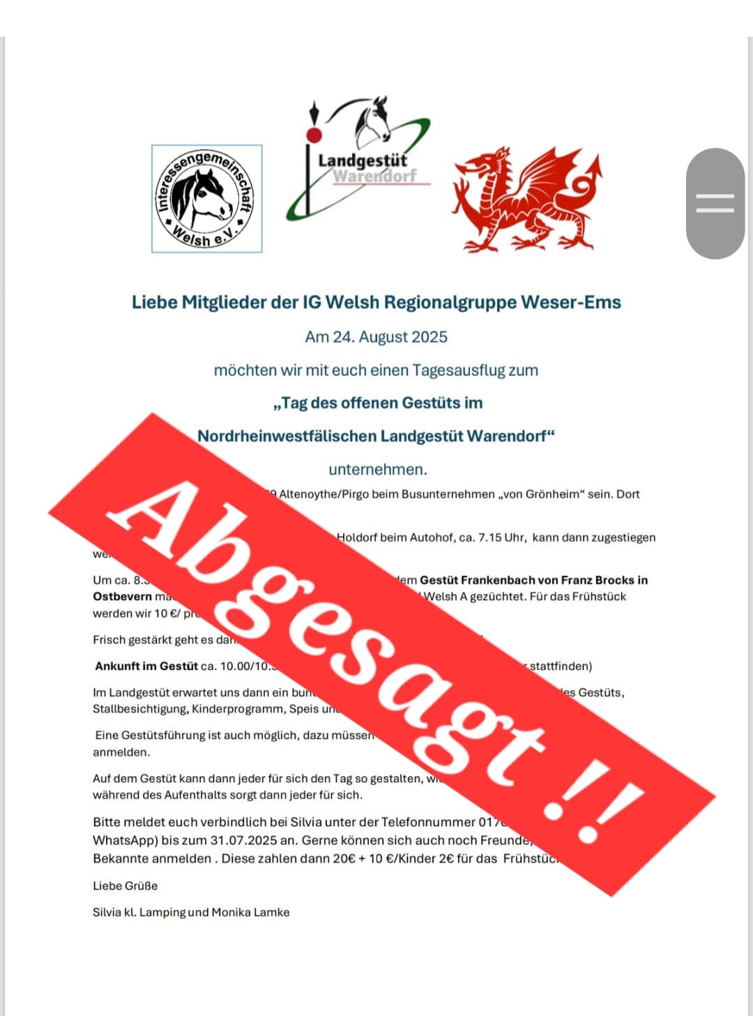 PHOTO-2025-07-24-14-36-27 24. Juli 2025Keine Kommentare Gefällt Ihnen der Inhalt? Teilen Sie ihn mit Ihren Freunden. Facebook Twitter Google Plus Linked In Email Beitrags-Navigation Absage Ausfahrt Warendorfer Landgestüt