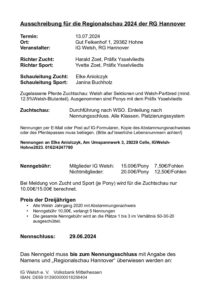 Ausschreibung 15. Mai 2024Keine Kommentare Gefällt Ihnen der Inhalt? Teilen Sie ihn mit Ihren Freunden. Facebook Twitter Google Plus Linked In Email Beitrags-Navigation Ausschreibung für die Regionalschau 2024 der RG Hannover