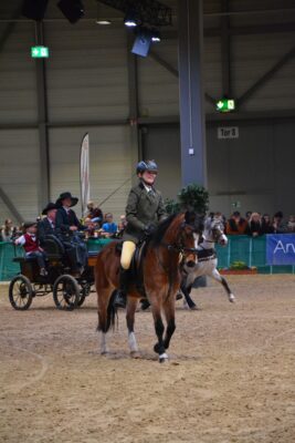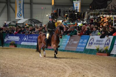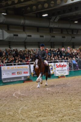 Sehr glücklich war wir jedoch über unser First Ridden Paar, bestehend aus der 12 jährigen Reiterin Jolina Böhm und dem Welsh B Wallach Van Royc ́s Don Gregory. Die Beiden haben ihre erste Messesituation wirklich mit Bravour gemeistert (Besitzer: Dajana Nicodem).