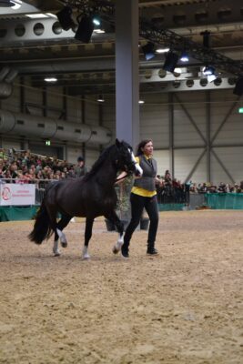 Der dreijährige, gekörte Welsh C Hengst Picasso eröffnete das Schaubild. Er wurde dem Publikum als Beispiel für die Vorstellung an der Hand präsentiert (Züchter und Besitzer ist unser neues Mitglied Dajana Nicodem).