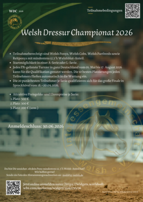 Ausschreibung 1. Schleswig-Holsteinisches Welsh Stutenchampionat Termin: 04. Mai 2025 Ort: Futterkamp 24327 Blekendorf Veranstalter: IG Welsh Regionalgruppe SH/HH Schauleitung: Gesine Schmale Richter: Claudia Greßhörner Beginn: 11.00h Nennungen an: Birthe Hagemeister, Schillerst. 11, 22946 Trittau, birthe1708@gmail.com Der Nennungen ist eine Kopie des Abstammungsnachweises beizufügen. Nennschluss: 25.04.2025 kann auch am Messestand auf der Nordpferd abgegeben werden Nenngeld: IG Welsh Mitglieder 15,00 EUR Pony […] Continue Reading