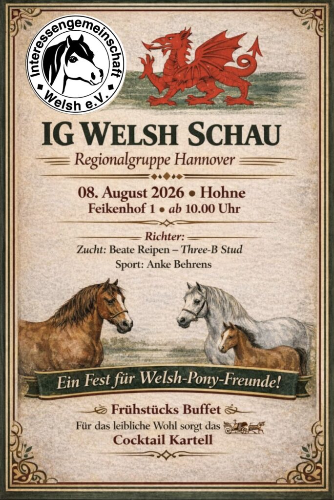 Bericht zur jährlichen Herbstversammlung Am 02.11.2024 fand die Herbstversammlung der IG Welsh Regionalgruppe Hannover statt, bei der wir auf ein spannendes Jahr zurückblicken konnten. Ein bedeutender Punkt der Tagesordnung war die Wahl der zweiten Vorsitzenden, bei der Elke Aniolczyk einstimmig wieder gewählt wurde. Ihr unermüdlicher Einsatz und ihre Begeisterung für die Welsh-Ponys werden unsere Gruppe auch weiterhin bereichern. Ein weiteres […] Continue Reading