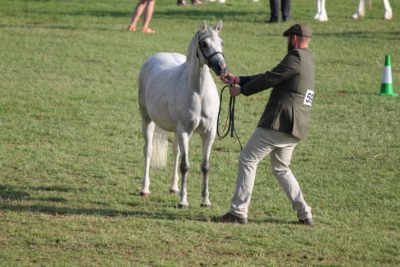 Welsh B Stuten ohne Fohlen. Christian Blümle und Sarah Diepen hatten sich mit der selbstgezogenen Red Flower Ninette of Rose (v. Paddock Marquis) auf den Weg gemacht und traten gegen äußerst starke Konkurrenz auf dem „heiligen Rasen“ an.