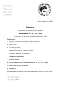 Einladung Regionalvers_Westf2019 25. Oktober 2019Keine Kommentare Gefällt Ihnen der Inhalt? Teilen Sie ihn mit Ihren Freunden. Facebook Twitter Google Plus Linked In Email Beitrags-Navigation Einladung Regionalvers_Westf2019