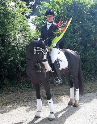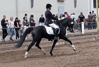 Caroline Budischowsky und ihr Welsh Partbred- Hengst RM V-Power beeindruckten am vergangenen Wochenende nach bereits einigen Platzierungen in Dressuren der Klasse M beim Turnier in Forst mit ihrem ersten Sieg in einer Dressurprüfung Klasse M mit einer Wertnote von 8.0.