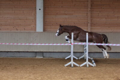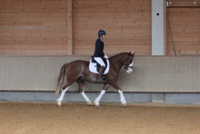 Dort nahm die Welsh Cob Stute „ Cavalluna“ von Felinmor Triple Crown aus der Llanidan Clogau Gold teil. Die 5- Jährige Stute stellte sich den einzelnen Prüfungsteilen im Freispringen, der Rittitgkeitsaufgabe und dem Fremdreitertest unter Sarah Kohl vom BZVKS und bestand die Leistungsprüfung mit Bravour. Hervorzuheben ist das diese bunte Fuchsstute nicht nur selbst gezogen sondern auch selbst ausgebildet und vorgestellt wurde von der erst 16- jährigen Rosa Hasenauer!