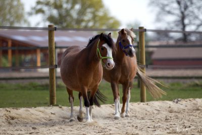 Zuerst machten wir einen Rundgang, um die großen hellen Abfohlboxen, die geräumigen Paddockboxen und die vielen Auslaufmöglichkeiten für die Ponys anzuschauen.