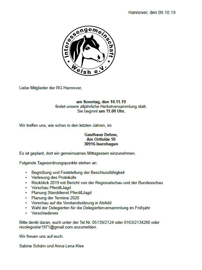 Herbstversammlung Hannover 2019 17. Oktober 2019Keine KommentareRegionalgruppe Hannover Einladung zum Download Gefällt Ihnen der Inhalt? Teilen Sie ihn mit Ihren Freunden. Facebook Twitter Google Plus Linked In Email Beitrags-Navigation Regionalschau Berlin-Brandenburg 2019RG-Versammlung Bayern 2019