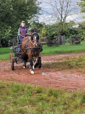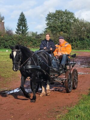 Schon beim Einspannen wurden viele Fragen beantwortet, Vor- und Nachteile von Geschirren erläutert und dann ging es auch für die Novizen ab auf den Fahrplatz, wo schon Otto v. Danwitz mit seinem ebenfalls hervorragend gefahrenen Irish Cob-Gespann auf die „Schnupperer“ wartete.