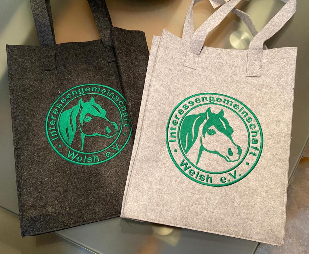 Die neue IG Welsh Kollektion 2023 besteht aus einem Polo-Shirt, einer Cap, verschiedenen Taschen aus Filz und einer Aufbewahrung für Equidenpässe mit dem IG Welsh-Logo in den IG Welsh-Farben.