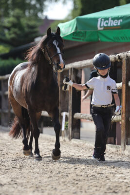 Als gar nicht so einfach kristallisierte sich die Prüfung „Tanz der Hufe“ heraus, eine Bodenarbeitsprüfung, die eine feine und bestens abgestimmte Kommunikation vom Boden aus erforderte und ein Pilotprojekt der Regionalgruppe ist. Doch was zu Hause in gewohnter Umgebung hervorragend klappt, kann auf einmal mit den vielen neuen Eindrücken in fremder Umgebung ganz anders sein. Ein Beispiel der Extraklasse und die Demonstration wie es sein sollte zeigte Sofia Wölert mit ihrem Welsh B Menai Sentry. Die Traumnote 9,0 und der hochverdiente Sieg waren die Belohnung.