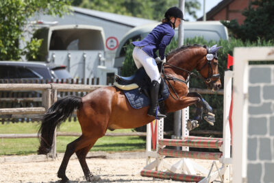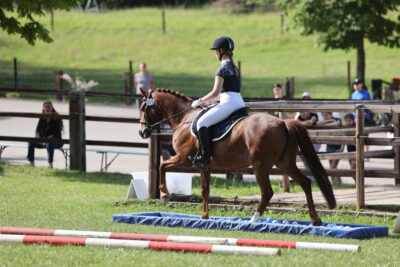 Das Elementarspringen stellt ebenfalls eine sehr gute Möglichkeit zum Erlernen von Springprüfungen für Pferd und Reiter dar. Tempokontrolle, Linienführung, genaues Anreiten, alles Eigenschaften, die in dem fairen von Katrin Werther gebauten Parcour abgeprüft wurden. Am besten gelang dies mit einer fehlerfreien Runde Hannah Bohl mit Small Edition.