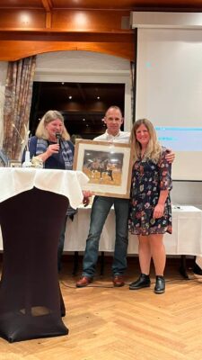 Gut gestärkt vom reichhaltigen Buffet folgten die Ehrungen. Zunächst wurde ein ganz besonderer Wanderpreis überreicht: Ein gerahmter limitierter Kunstdruck der bekannten Malerin Debbie Dunbar, Markus Bauer aus Österreich für den Bundesjugendsieg mit MBS Martini überreicht wurde. Das Bild zeigt den Stempelhengst Gwynfaes Culhwch und wurde von dessen Züchter Meirion Evans, Wales großzügig gestiftet.