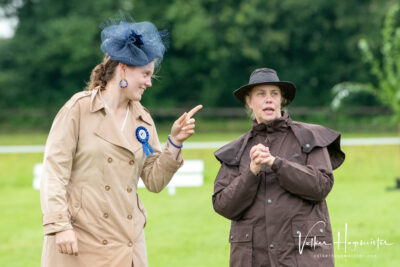 Und trotz des tagelang vorher angekündigten schlechten Wetters waren fast alle gekommen … wir hatten kaum einen Ausfall der fast 60 genannten Welsh Ponys zu verzeichnen. Als Richterin hatten wir die Niederländerin Rhode van Praat eingeladen, die dem Wetter mit einem stets breiten Lachen im Gesicht trotzte und sich von den schönen Ponys begeistern ließ. Immer freundlich und mit wohlwollenden Kommentaren entließ sie Ponys, Vorführer und Reiter zufrieden aus den Zuchtklassen und Sportprüfungen.
