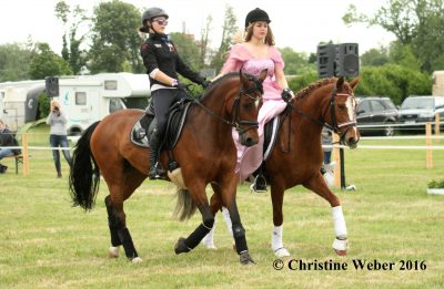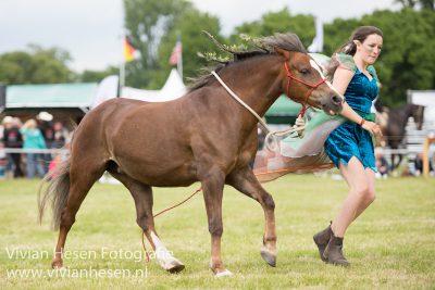 In diesem Jahr konnte Anna Kutsch aus einer Vielzahl an Schaubildern ein interessantes und abwechslungsreiches Programm zusammenstellen. Es gab eine Kinder-Voltigiergruppe auf einem Welsh A, eine Elfe mit ihrem Welsh B in einer Freiheitsdressur, Führzügel-Kinder im englischen Outfit auf einem Welsh A und einem Welsh C, Welsh D in Zirkuslektionen und bis zur hohen Schule ausgebildet, im Speed Rodeo und im Zweispänner, Welsh Partbreds in einer Dressurkür mit Barbie und Ken Verkleidung, Ponys aller Sektionen in Dressur, Springen und bei der Bodenarbeit bis zu Zirkuslektionen, ein Pas de deux mit Einspännern, und verschiedene Mitmachaktionen für die Zuschauer.