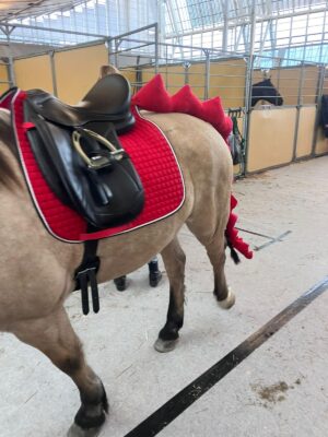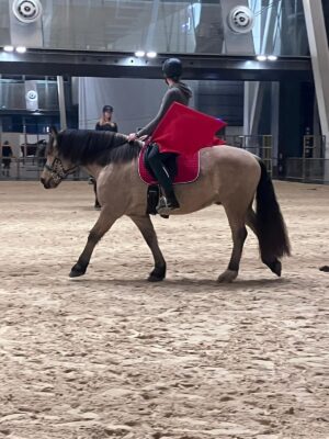 Erstmalig seit langer Zeit durften wir zwei Schaubilder aufführen. Ein kurzes in der großen Schauhalle und eine längere Rassepräsentation im Aktionsring. Bei der Rassepräsentation konnten wir alle Sektionen vorstellen und hatten meist 10 Ponys dabei. Das erfahrene Team bestand aus Reitern im Alter von 2 bis über 30 Jahren. Für jeden war etwas dabei.