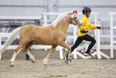 Der charmante ausdruckstarke Camino, ein Sohn des Cesar (MV: Petit Rock the Moment Z: Wiebke Süsens, Gyhum) überzeugte mit taktvoller Bewegung und einem harmonischen Gebäude, so dass sich Jan Lindemann, Lilienthal als Besitzer über die Platzierung als 1.Reserve freuen konnte. Der 2. Reservesieger Diamant-Fleur v. Dreidimensional I AT NRW/FS Coco Jambo ( Z: Wilhelm Verhaag, Goch/ B: Adolf Theo Schurf, Bedburg) gefiel besonders durch seine Elastizität in allen drei Grundgangarten und einer sehr guten Halsung.