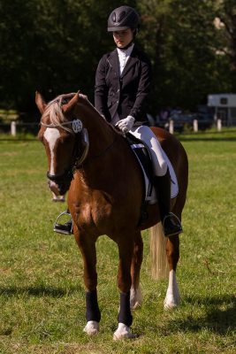 Wie in jedem Jahr hatte die Regionalgruppe zahlreiche Ehren- und Sachpreise gesammelt, die den Teilnehmern der Zuchtschau und der englischen Reitklassen überreicht werden konnten. Dass jeweils drei Abteilungen Junior Handling und First Ridden eingeteilt werden konnten, zeigte zudem, dass man sich in Hessen kaum Sorgen um den Nachwuchs machen muss. Beides wurde dankenswerterweise von Frau Karin Bardenbacher gerichtet, die außerdem (wie auch in den vergangenen Jahren) den Ehrenpreis für den Sieger der Sattelklasse stiftete, den in diesem Jahr Ilka Rosenthal auf Randeck Ruby (Welsh D) mit nach Hause nehmen konnte.