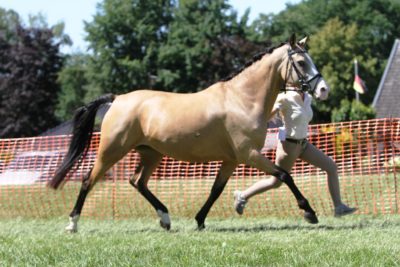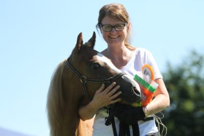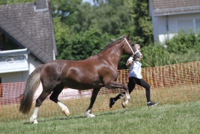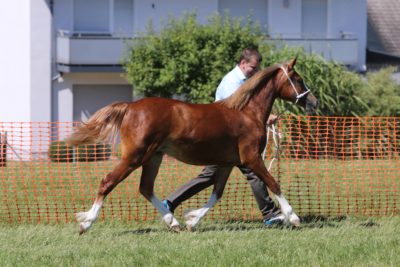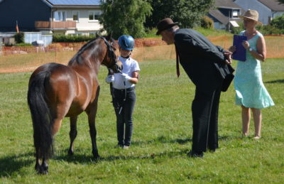Über den Tagessieg freuten sich Inka und Stephan Siemers, die wohl die weiteste Anfahrt auf sich genommen hatten. Ihre auffällige, erst dreijährige Welsh A-Rappstute Leybucht´s Amanda, trabte allen anderen davon, wurde Sektionssieger A und Tagessieger der Schau. FMS Golden C Betty, eine einjährige, bildhübsche Fuchs-C-Stute, gezogen und im Besitz von Michael Schmidt aus Korschenbroich, holte am Vormittag den Jugendsieg der Schau und wurde zudem am Nachmittag im Tageschampionat in Konkurrenz mit den älteren Tieren Tagesreservesieger. Der Fohlensieg ging an den schicken braunen Partbred-Hengst Chi-Chi, aus der Zucht und im Besitz von Andreas Freyer aus Wuppertal.