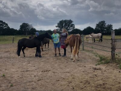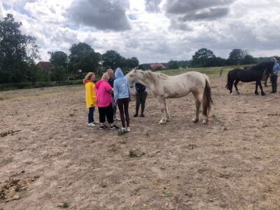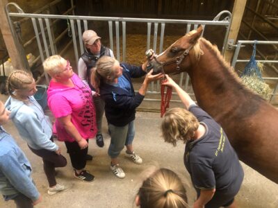 Nach dem Mittagessen kam der praktische Teil. In der Halle wurde das Vorstellen mit zwei verschiedenen Ponys geübt. Danach ging es in die Stallgasse. Es wurden Tipps und Tricks gezeigt, wie man ein Welshpony besonders hübsch herausbringt.