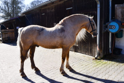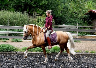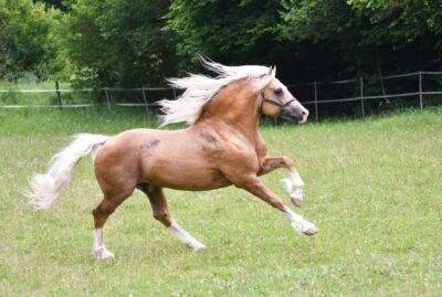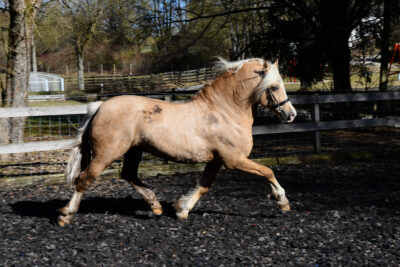 Taraco Firecracker ist ein großrahmiger Palomino mit viel Aktion im Bewegungsablauf. Mit 4 hochweißen Stiefeln, Blesse und seiner langen Mähne ist er ein echter Hingucker. Er ist ein sehr lieber Kerl, brav im Umgang und eine Lebensversicherung unter dem Sattel.