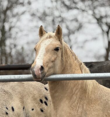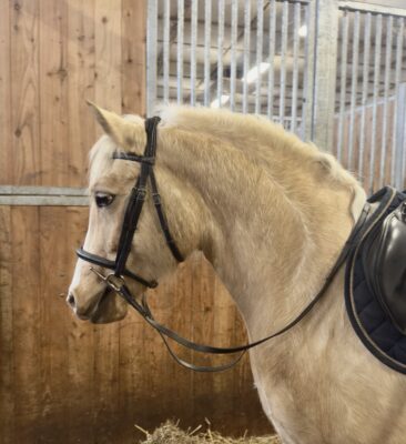 Unsere Enfys ist ein richtiger Schatz. Sie ist eine gut gelungene Stute um 1,47/1,48 m Stockmaß in schickem blonden Palomino.