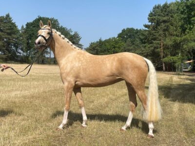 Äußerst schicker Jährlingshengst in außergewöhnlicher Farbe, mit kräftigem Knochenbau ausgestattet, bringt von Natur aus viel Schub/Bewegung mit und wird bei entsprechender Förderung/Ausbildung ein top Dressurpony.