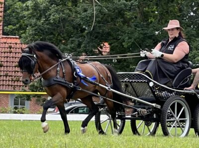 Stets lernbereit und willig zeigt er sich nicht nur vor dem Wagen, sondern auch im Umgang und unter dem Sattel mit kleinen Kindern.