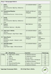 Da die Regionalgruppe Sachsen-Anhalt nicht zu den mitgliederstärksten Regionalgruppen gehört (was nicht ist kann ja noch werden), freute es mich besonders, dass die IG Welsh e.V. einen Sonderehrenpreis für den Tagessieger der Rassegruppe Welsh sponserte. Dieser tolle Pokal konnte am Ende der Zuchtgemeinschaft Hackfurth-Weiser übergeben werden, die mit High Flown´s Malibu, dem einzigen Wallach der Gruppe, den Tagessieg erringen konnte. Dem Wallach gelang es mit einer herausragenden Trabmechanik und gutem Seitenbild das beste Schauergebnis abzuliefern. Wir danken allen Ausstellern, dass sie sich die Mühe machten, mit Herzblut, Freude und Stolz ihre Ponys bei uns auszustellen.