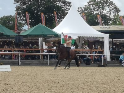 „WELSH SPORTS DAYS“ auf der EQUITANA Open Air hieß es dann am Samstag und Sonntag. Üblicherweise findet dieses Turnier der Welsh Reiter jedes Jahr auf dem Heidehof in Villmar statt und lockt die Besucher aus ganz Hessen und den angrenzenden Bundesländern an. In diesem Jahr konnte sich nun ein noch breiteres Publikum ein Bild von der Vielseitigkeit der Welsh Ponys machen. Freizeitreitergehorsam Trail, Welsh Hunter Prüfungen, Langzügelprüfung, eine Kostüm Kür für jeweils 2 Reiter und verschiedene Dressurprüfungen bis hin zur Klasse M fanden unter den kritischen Augen von Richter Jaques T. V. Annyas und Richterin Cora Feldmann statt.