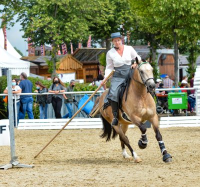 Petra Urban begeisterte mit Walking on Sunshine, genannt Bärbelchen nicht nur im Schauprogramm, sondern sicherte sich auch den Sieg in der Freizeitreiterkombi, die sie vor Romy Kilian mit French Jonas gewinnen konnte.