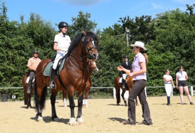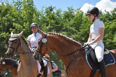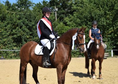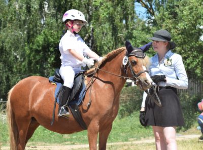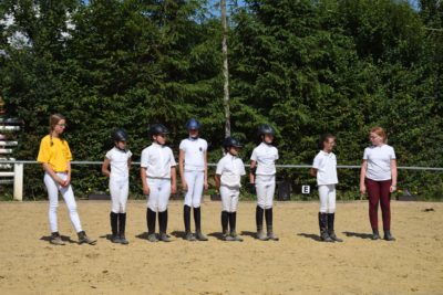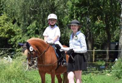 Nachdem die Reiter die Geländestrecke absolviert hatten, wurden zwei Rittigkeiten verschiedener Schwierigkeitsstufen angeboten. Sehr nett anzuschauen und auch für unsere Richterin eine Premiere, war der auch im letzten Jahr bereits statt gefundene Führzügel-Cross für die „Kleinsten“, bei dem außer einem einfachen Geschicklichkeitsparcours auch das Bewältigen eines niedrigen Abhangs gefordert war. Da das Beurteilen für eine Richterin ein wenig zu viel war, wurde, um die Veranstaltung im Zeitrahmen zu halten, eine zweite Jurorin hinzugezogen, welche dann die darauf statt findende Gehorsamsprüfung an der Hand, sowie die gerittene Prüfung bewertete. Auch hier hatten die vielen Pony- und Cobfreunde die Gelegenheit, das ihr Talent und das ihres Vierbeiners unter Beweis zu stellen. Parallel dazu fand auf dem Reitplatz nebenan ein Elementar-Springen, sowie im Anschluss Hunter-Springen in zwei verschiedenen Kategorien statt. Sehr gut konnte man auf beiden Plätzen zuschauen, wenn man sich in der Mitte auf den bereitgestellten Sitzgelegenheiten niederließ. Am Ende fand die Siegerehrung der ausgeschriebenen Freizeitreiter-Vielseitigkeit statt.